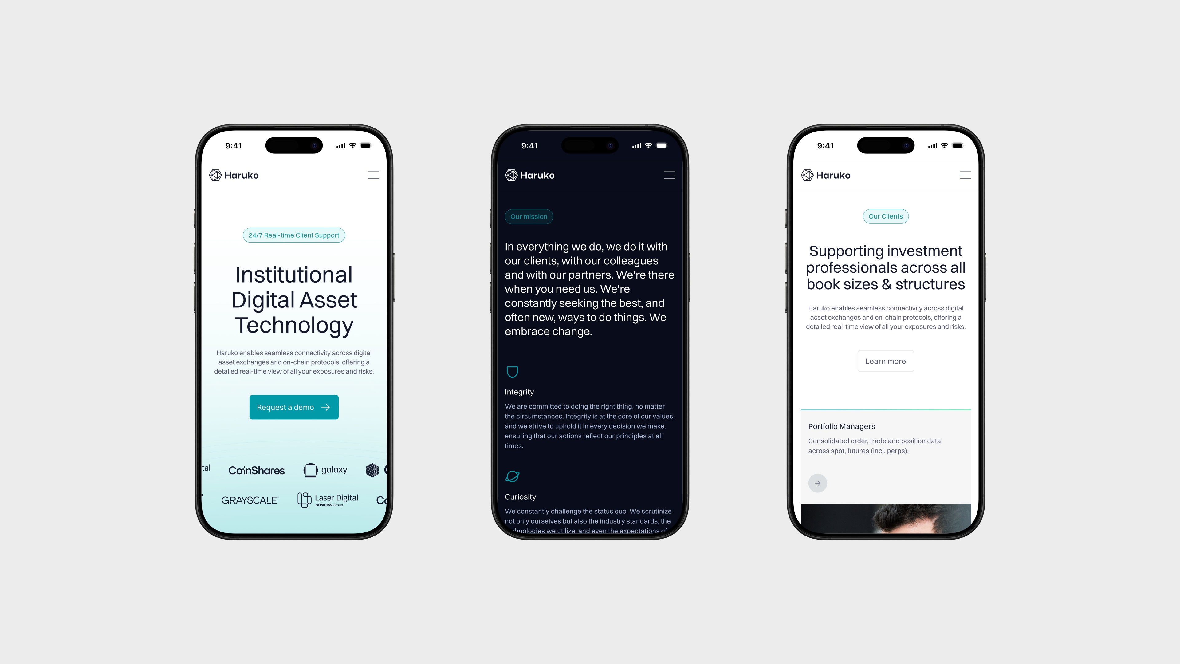 As a tool for professionals and users with experience the tone had to be serious and informative. However, we also recognised the techy/fast-moving nature of the sector and therefore were keen to make sure Haruko would feel modern and up to date sitting alongside similar companies.