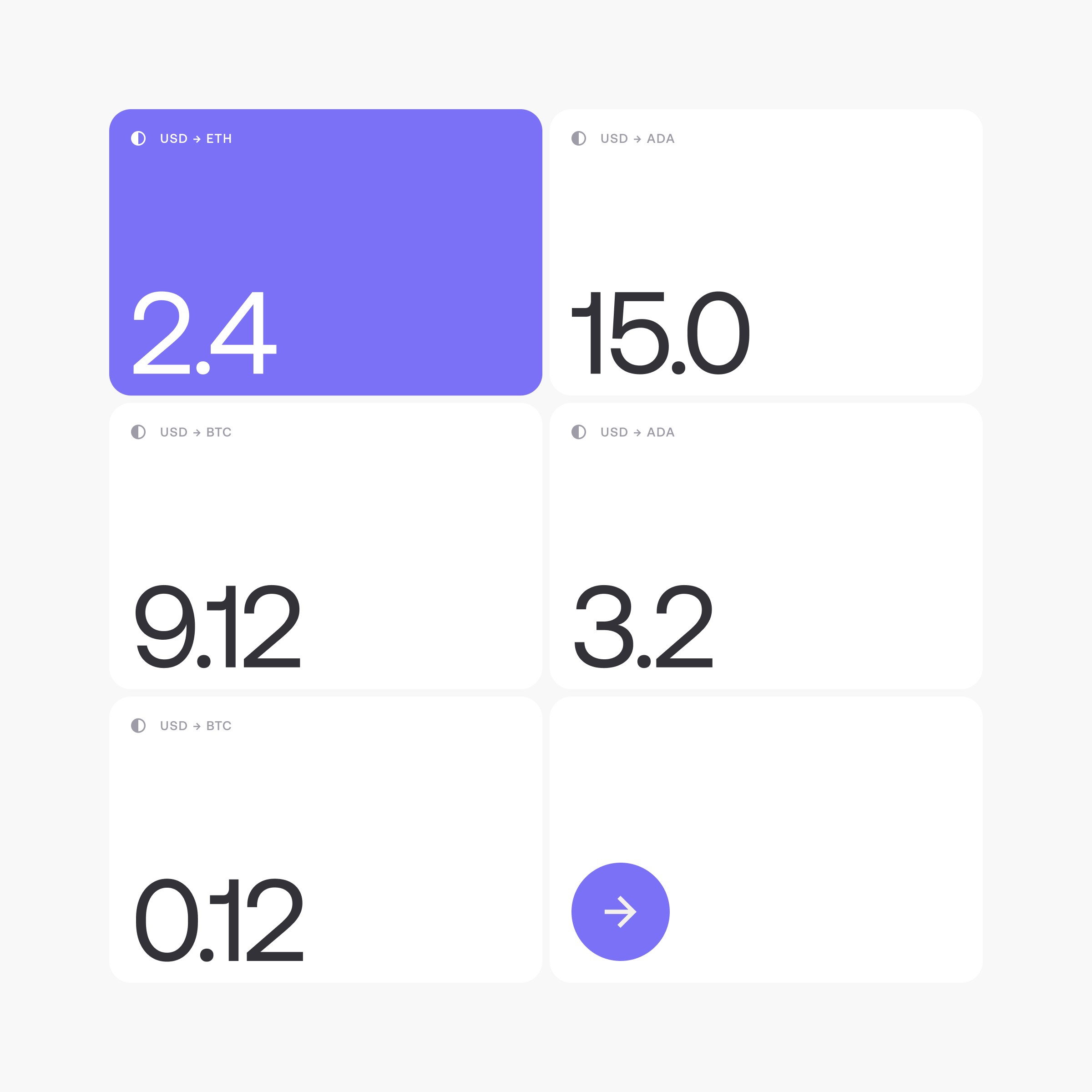 We developed 2x options with simple concepts around trading and coins. This route presented here was not chosen but demonstrates our thinking and execution of a visual style we felt would fit well within the industry. We wanted to lean into the visual language of the geometric roundness of the circle with the type and use of pill shapes.