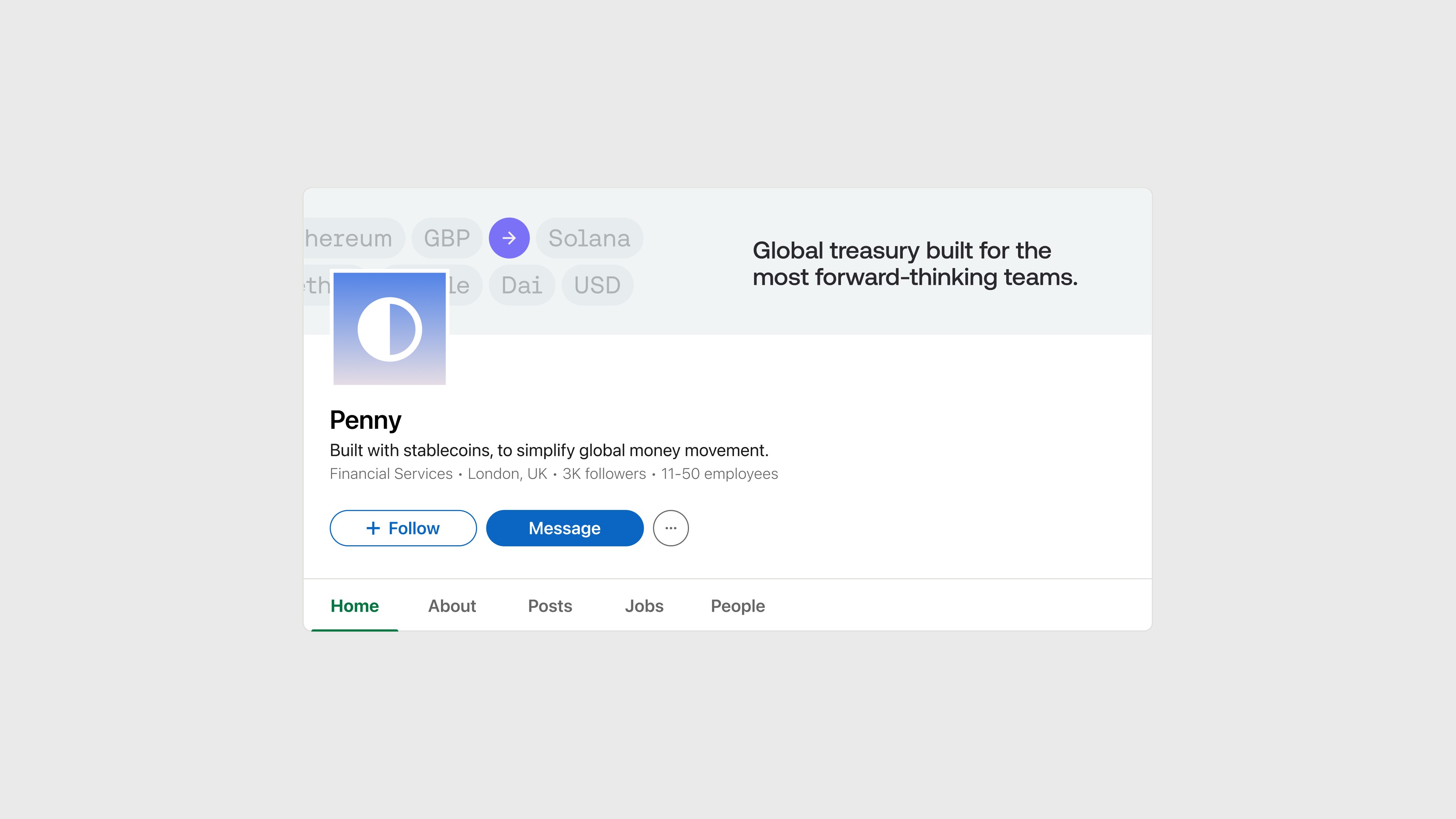 Penny is a subsidiary of B2C2 offering financial services for Stablecoins (a digital currency backed by a stable asset). B2C2 approached Plug & Play looking for a lightweight brand and one page site to showcase their new offering.